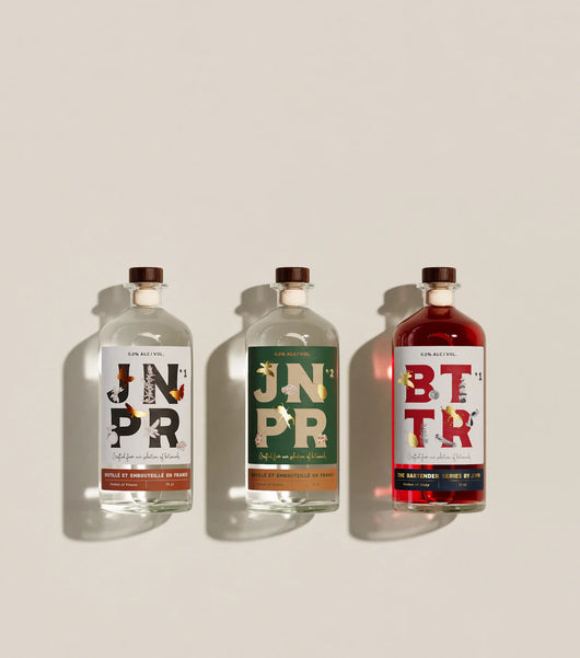 JNPR-handtekeningaanbieding Onze bestseller Mis onze niet JNPR Signature-aanbieding, om de essentie van het merk te ontdekken: JNPR n°1, JNPR n°2 en BTTR n°1. Maak de beste cocktails die je ooit zult...