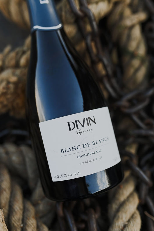 De DIVINE Vigneron Blanc de Blancs vindt alcoholvrije wijn opnieuw uit met stijl en precisie. Gemaakt van 100% Chenin Blanc, gedeeltelijk gerijpt in eikenhouten vaten, verleidt het met zijn frisheid, zijn structuur en zijn aromatische adel. Dankzij een zachte extractie van alcohol behoudt het de ziel van de wijn en smaakt het als een geweldige witte wijn, zonder concessies.
