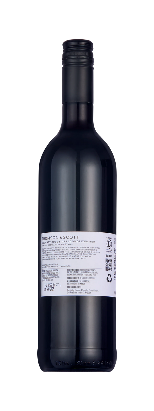 Noughty rode wijn 0,5% zonder alcohol is gedealcoholiseerd tot minder dan 0,5% alcohol, terwijl de rijke smaak van deze prachtig vormgegeven fles behouden blijft.