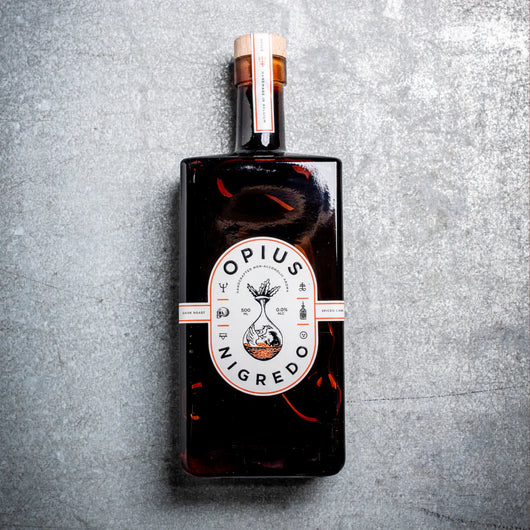 De eerste stap op weg naar dit elixer van een lang leven? De nauwgezette reiniging en transformatie van alle ingrediënten in een donker en uniform materiaal. Deze stap, gesymboliseerd door een kraai, is een metafoor geworden voor de confrontatie met onze interne duisternis. Zijn naam: “ negredo ". OPIUS Nigredo is een donkere, geroosterde alcoholvrije drank met tonen van koffie en karamel.
