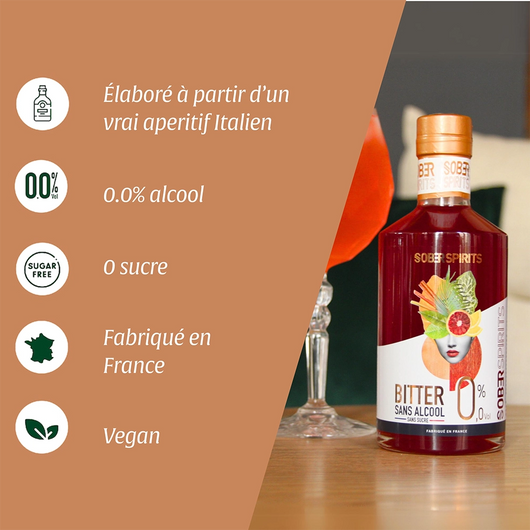Proef de ware smaak van een bitter aperitief, Bitter, zonder alcohol Gemaakt van een authentiek Italiaans aperitief, de geur van Sober Spirits Bitter 0,0% - Alternatief voor Bitter is typerend voor een...
