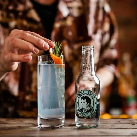 Onze Thomas Henry Botanische Tonic, als mixer, garandeert precies dit soort eigentijds genot. Mediterrane en lokale aroma's vermengen zich en accentueren perfect de tonen van rozemarijn, jeneverbes, laurier en dragon, evenals sleedoorn-, vlierbloesem- en sparrennaalden.