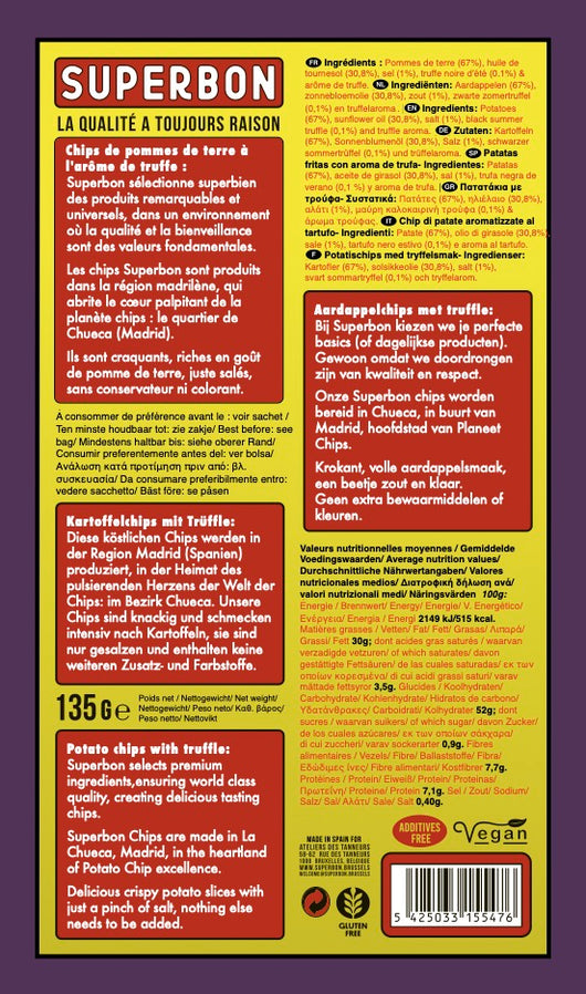 Superbon vindt Truffelchips opnieuw uit door gedehydrateerde zwarte zomertruffel centraal te stellen in het recept.
