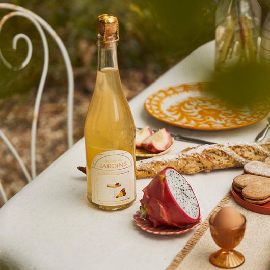 Bulles de Jardins, ons assortiment gastronomische mousserende wijnen zonder alcohol, biologisch en suikerarm. Ontworpen om uw maaltijden te begeleiden, van voorgerecht tot dessert.